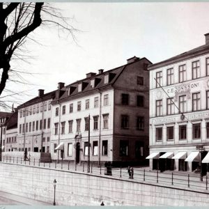 Gatan har fortfarande samma sträckning och lutar ungefär lika mycket. Bara några av husen längst bort, finns kvar än idag. Dom andra har bytts ut, mot några betydligt större. Sannolikt är dom också bättre byggda.
